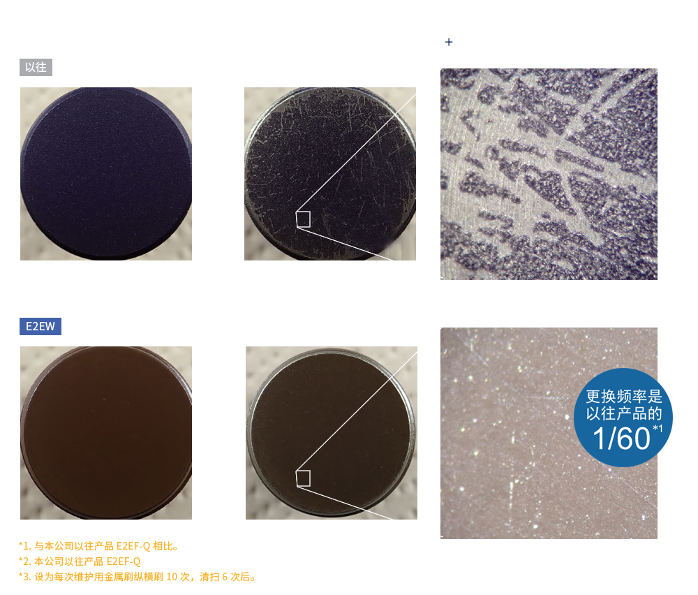 凭借不易剥落的氟树脂涂层技术,即使清扫也能长期维持耐飞溅性,可降低更换频率。