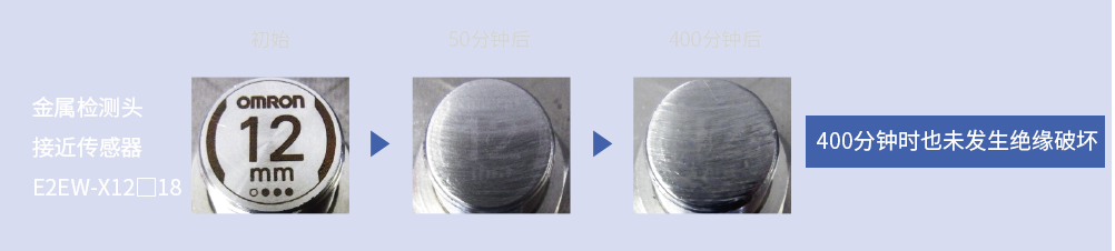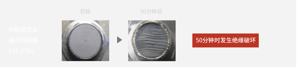 树脂检测头在50分钟时发生绝缘破坏,而金属检测头即使