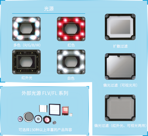 可以自由组合“拍摄元件、镜头、光源”这些决定智能相机性能的重要模块。也可以根据检查、测量的要求规格配置最佳相机,