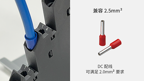 配线孔采用大口径和倾斜结构,易于观察和插入操作。兼容2.5mm2以实现配线标准化。
