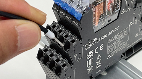 Push-In Plus端子台通过弹簧结构固定端子/电线,不会因振动导致螺钉松动或脱落,所以无需反复确认以避免螺钉松动导致异物混入或者忘记拧紧螺钉。