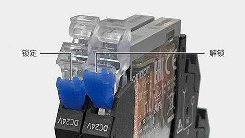 锁定/解锁止动件,轻松更换继电器并防止其脱落