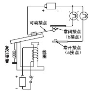 4)铁片被吸引到铁芯之后, 可动接点和固定接点接触, 灯光亮 起。