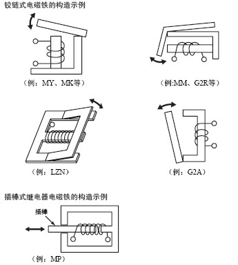 无极继电器的电磁铁构造也有很多, 下图显示其中具有代表性的示例。