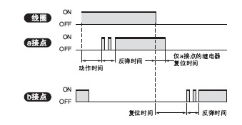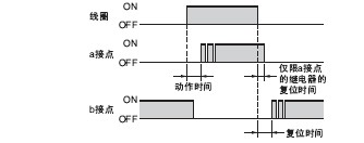 复位时间→将线圈OFF后, 到a 接点(接通接点) 为 OFF之前的时间(c接点的情况下, 为到b 接点之前的时间)