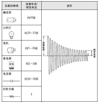 在交流操作下, 由于启动时流通的电流大于额定电流, 与直流操 作不同, 与形状无关。