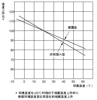 另外, 在直流电压操作的继电器中, 线圈电阻的变化对线圈的温 度上升产生影响。这是根据线圈电流的变化, 引起消费功率的增 减, 温度上升值仅根据温度所引起的线圈电流变化率而进行变 化。代表性示例如下所示。