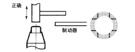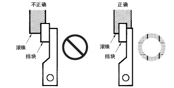 注. 关于挡块的形状,应设计成驱动杆反转时不能碰到另一方的滚珠。