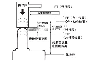 注. y是相对于全行程(TT)的比率,表示挡块的按下量应达到TT的50~80%(50~70%)。