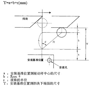 ·从对应于合适的行程的安装基准位置到挡块下端面的尺寸如下式所示。