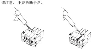 ·拆除连接时,如下图所示, 请使用螺丝刀,拆下上下卡爪后进行拆卸。
