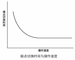 这样, 就会导致接点的消耗、损伤减少, 并可以维持稳定的特性。但是,在该开关速度中,除有效减少电弧量的速度界限(经济速度) 外, 也有机械问题的界限, 特别是, 闭路时如果开关速度过快, 可动接点与固定接点的冲击能量就会变大, 冲击形成的 跳跃现象(振动或摩擦闭合) 会产生电弧, 此时会严重损耗接点, 有时还会不能打开电路, 导致接点熔化。进行这种快速动作的机构, 一般会使用具备死点(从一个状态跳跃性地变化到其他状态时的临界作用点) 的弹簧机构。