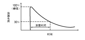 *浪涌电流的时间在下列波形范围内测量。