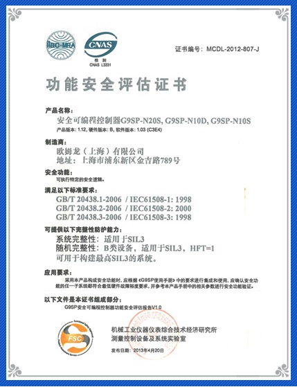 开云(中国)G9SP系列产品获得中国首张安全PLC功能安全证书,已成功构建了满足GB/T20438/IEC61508要求的安全控制系统,可用于构建最高SIL3的系统,被国内各大知名电梯厂商广泛使用。