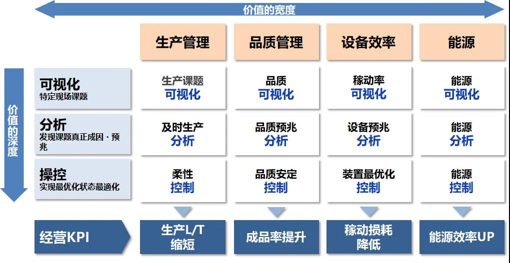我们从可视化(课题俯瞰),到确定因果的分析,进而实施控制进化。真正地为制造现场带来L/T缩短、成品率提升、稼动损耗降低、能源效率UP等价值。