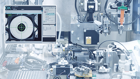光纤传感器生产中的镜头对位是决定投光性能的重要工序。绫部工厂通过IoT收集图像数据和诸如波形等流程数据,并将其大数据化。进而通过分析这些数据并自动校正位置偏差,实现品质稳定化。此外,通过AI控制器事先感知组装用设备发生故障和出现不良情况的预兆,实施应对这些问题的预测性维护。将过去进行以运行时间来管理的定期维护,变为管理设备的状态、在必要时作出应对的维护。由此将生产线的停止控制在最小限度,让及时维护成为可能。