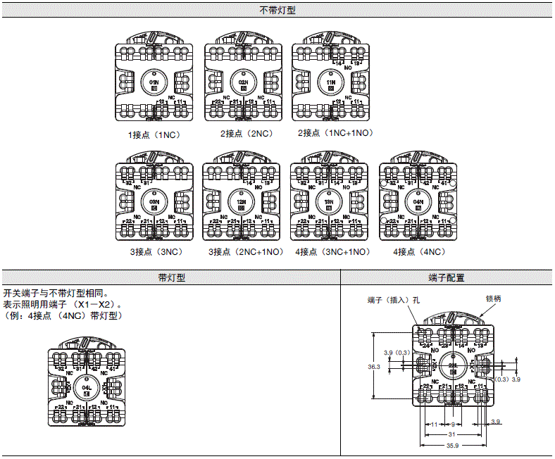 | 不带灯型 | 带灯型 | 不带灯型 |