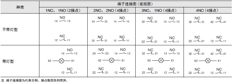 注. 仅NC接点侧有直接开路动作。