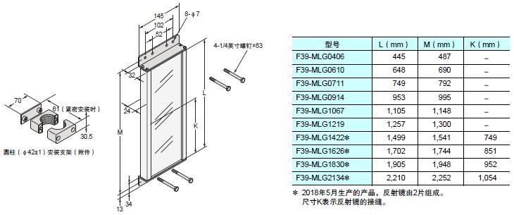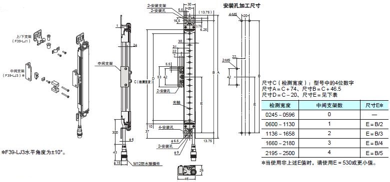 注. 由于F39-LJ8无法与中间支架一起安装,因此请保持检测宽度在600mm以下。