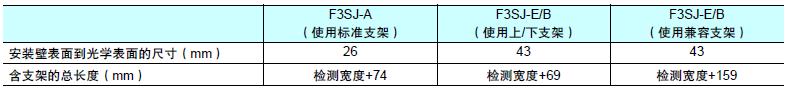 注1. 安装紧密安装支架的F3SJ-E/B系列检测宽度存在限制。
