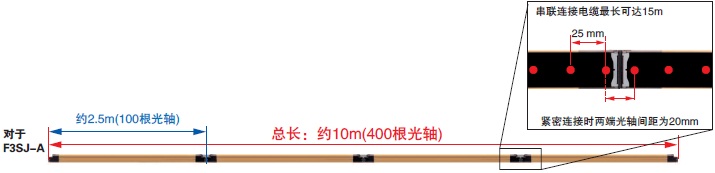 可串联连接最多4套(即400根光轴),且串联连接电缆的最长长度可达15米,因此应用范围涵盖广。
