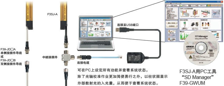 使用高功能型(F3SJ-A)的“S D Manager”,即可在PC上设定所有功能并查看系统状态。复杂设定简单化。