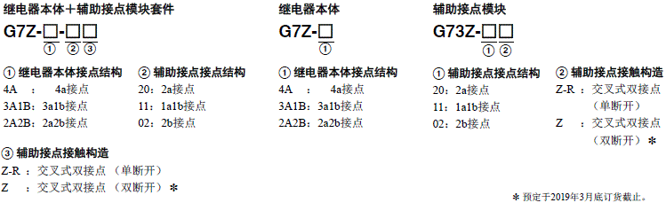 | 4极+2极 | 4A | 2a | G7Z-4A-20Z-R | DC12、24V | G7Z-4A-20Z | DC12、24V |