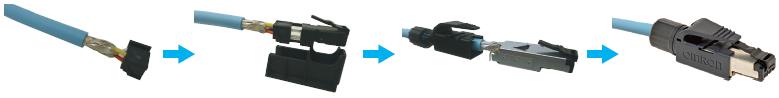 • 采用可减少电缆绕转所占用的空间的小型RJ45接插件、LSZH*为外径φ6.3mm的AWG26电缆、PUR为外径φ6.0mm的AWG26电缆。