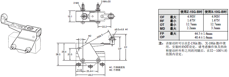 动作特性 注:请注意,各型号只包含驱动杆,而不包含开关部分。