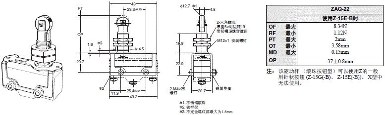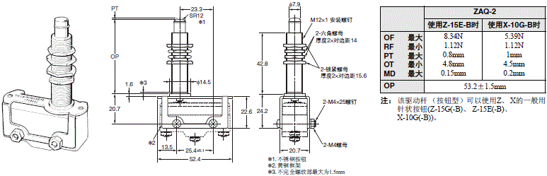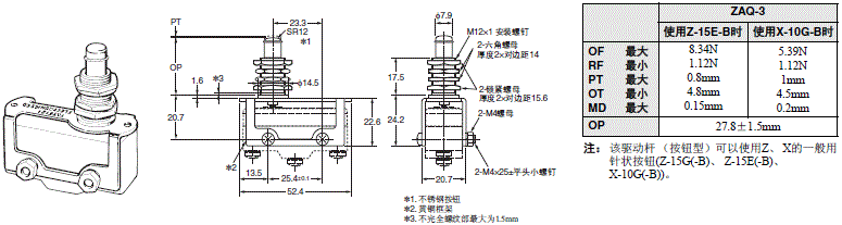 3. Z-15GQ8-B通过在柱塞部安装螺钉能够调整动作位置。