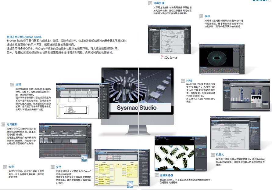 另外,这些设备可通过自动化软件Sysmac Studio进行一元操作,实现高开发生产效率的编程环境。