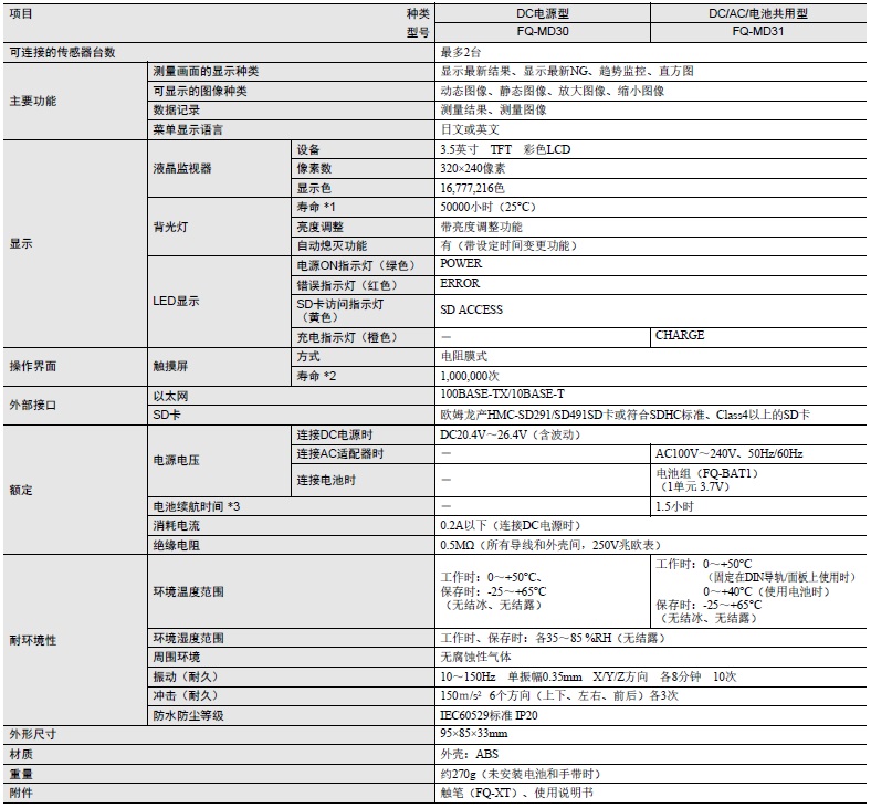 | 最高响应频率*3 | 50kHz(使用FQ-MWD005/FQ-MWDL005作为输入输出电缆时)