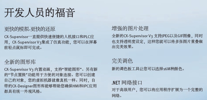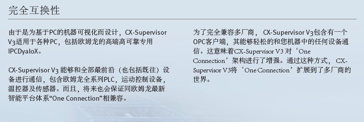 增强版面向那些应用程序需要处理更多设备及节点的情况。其它特性和CX-Supervisor V3 Machine Edition完全相同。