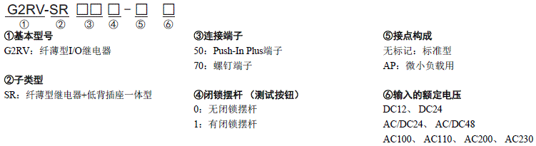 | 螺钉端子 | 标准型 | 无 | DC | 12 | G2RV-SR700 DC12 |