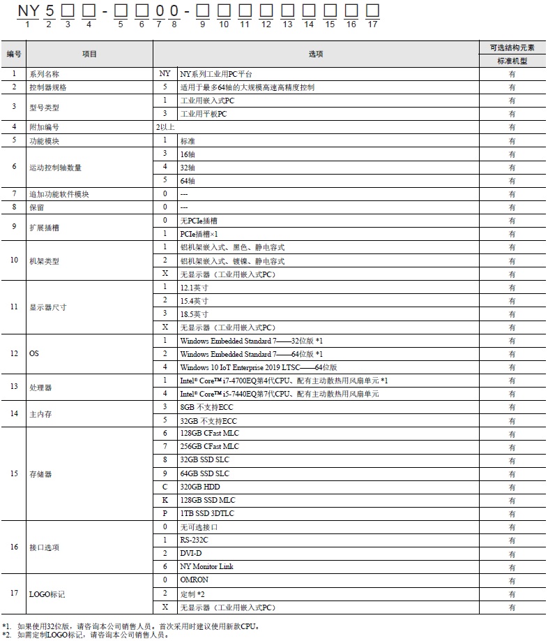 *1. 请从以下类型中按需选择。仅限于使用工业用嵌入式PC型时。