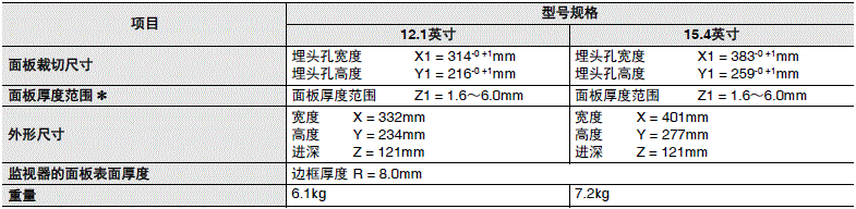* 面板的最小厚度因面板材料而异。