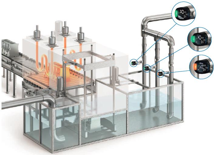 观察“流量+温度”和“压力+温度”作出判定。也可通过IO-Link向PLC输出数据,在发生异常状态之前容易维护。显示颜色可设定3种模式,与灭灯组合,则可设定4种模式。