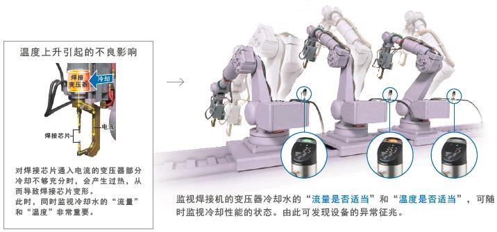 在相同位置监视“流量变化”和“温度变化”,使流量和温度的合适范围定量化。