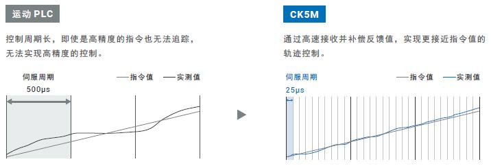 通过控制周期25µs/5轴*1这种超高速伺服周期运算,实现高精度的指令运算和高精度的指令追踪,使客户的设备达到更高精度。