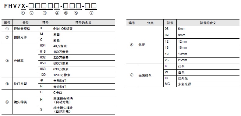 | 320万像素 | FHV7X-C032-C | FHV7X-M032-C | |