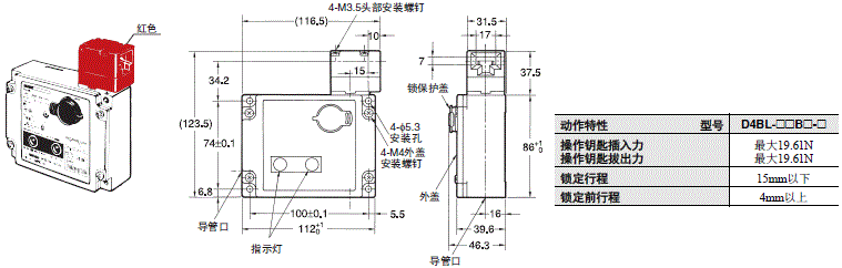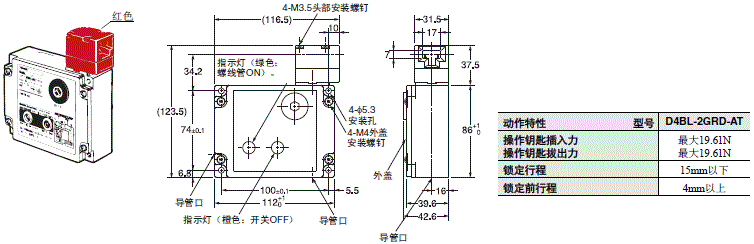 *2. 插入半径的值为操作钥匙的旋转中心点为操作钥匙安装面上时的值。