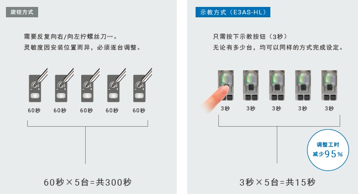 采用E3AS-HL,使用者可通过示教方式轻松实现理想设定,避免因启动时遇到问题而返工。 易于程序化的操作性使远程指示操作更加轻松。