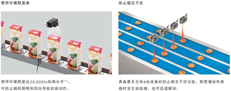具备最多支持4台设备的防止相互干扰功能,因此设计时无需担心与安装在附近的传感器相互干扰。在根据孔位置判断种类等应用中可近距离安装。