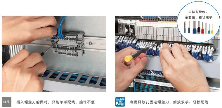 Push-In Plus端子台只需1步,大幅削减配线工时