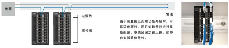 在控制柜侧面安装时,以往存在不便于进行配线作业的课题,但由于拆装无需使用工具,可以直接用手轻松配线。