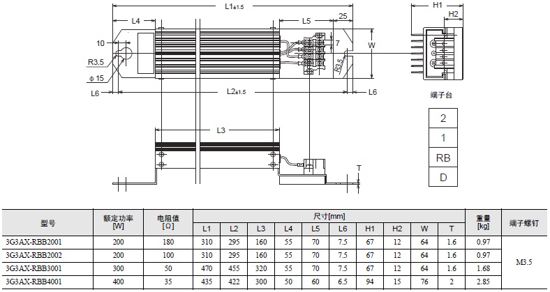 *1. 安装EtherCAT通信单元时的整体进深尺寸,请在变频器本体的D尺寸上增加34mm。