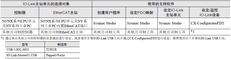 NXR系列支持EtherCAT的IO-Link主站单元的系统构成示例如下。 在此,以使用NJ/NX系列CPU单元及NY系列工业PC为示例进行说明。