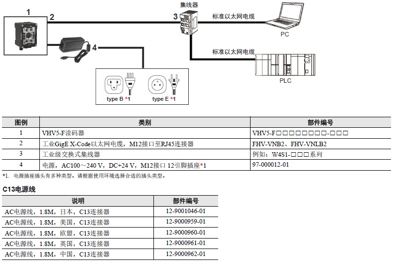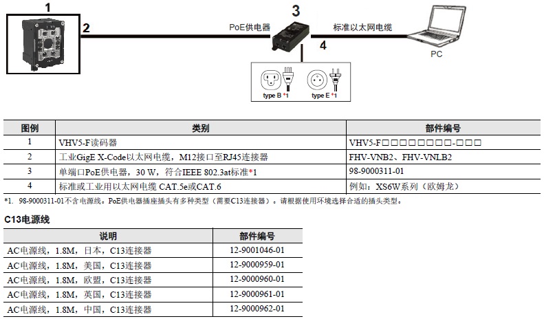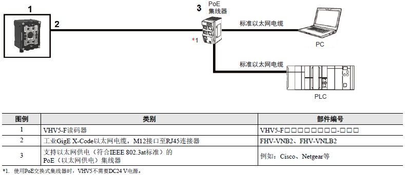 * 请从“DC24V电源”、“PoE集线器”、“5.电源(参见「种类」)”中选择供电方法。