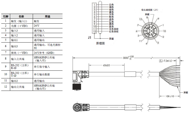 电源,AC100~240V,DC+24V,M12接口 12引脚插座(附带TypeB/E适用电缆) - 1m