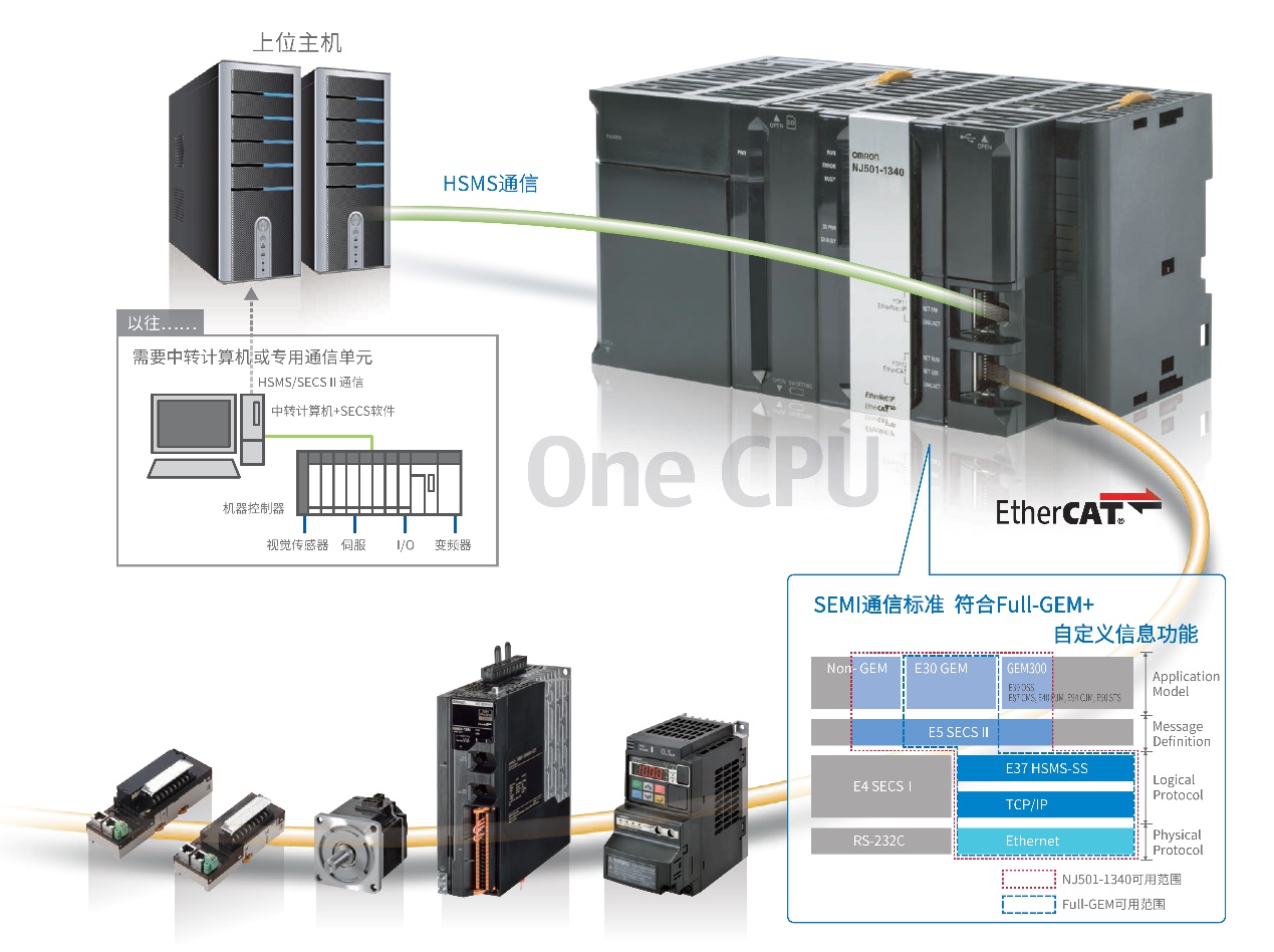 结合机器控制和上位通信,可在短时间内以低成本轻松实现SECS/GEM通信。
